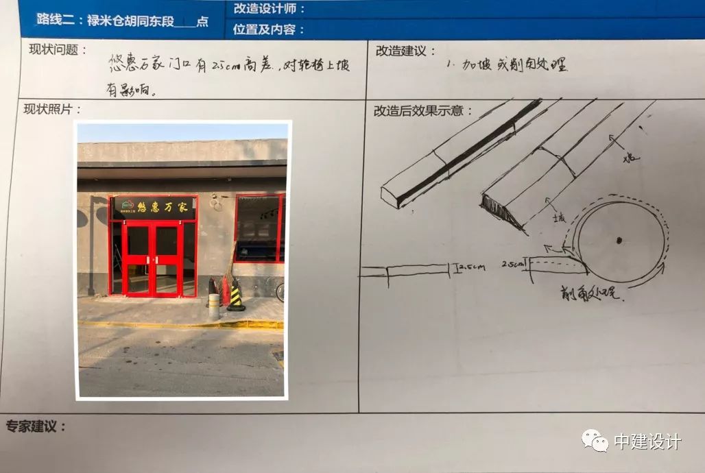 薛峰在采訪中指出,本次活動旨在通過一種陪伴式的無障礙改造,幫助當?shù)貧埪?lián)和殘疾人朋友把無障礙工作落到實處;活動當天黨員建筑師即完成多項無障礙改造微設(shè)計成果,希望以此為契機,倡導全市的設(shè)計單位和建筑師一起走進街巷,為百姓踏踏實實做好無障礙服務。