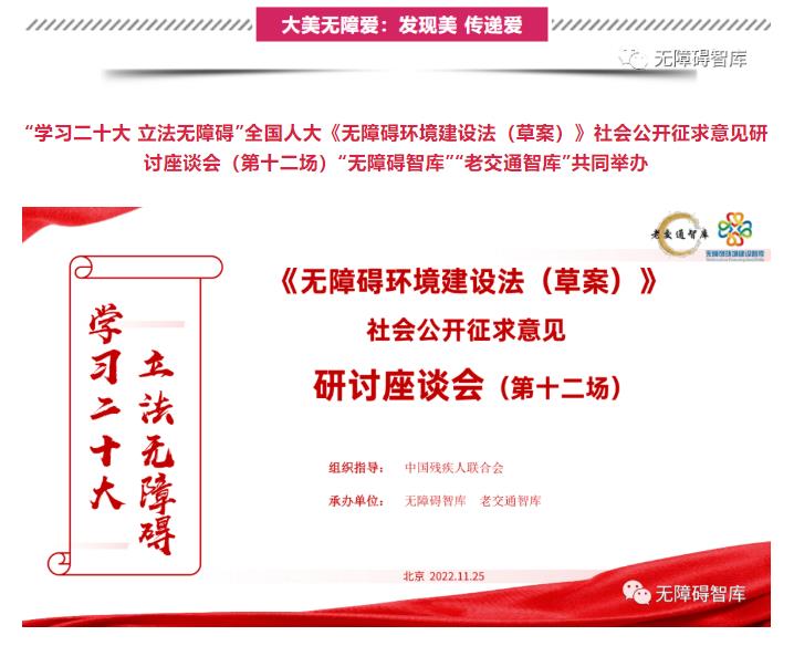 【智庫訊息】第十二場 | “學習二十大 立法無障礙”全國人大《無障礙環(huán)境建設(shè)法(草案)》社會公開征求意見研討座談會(第十二場)