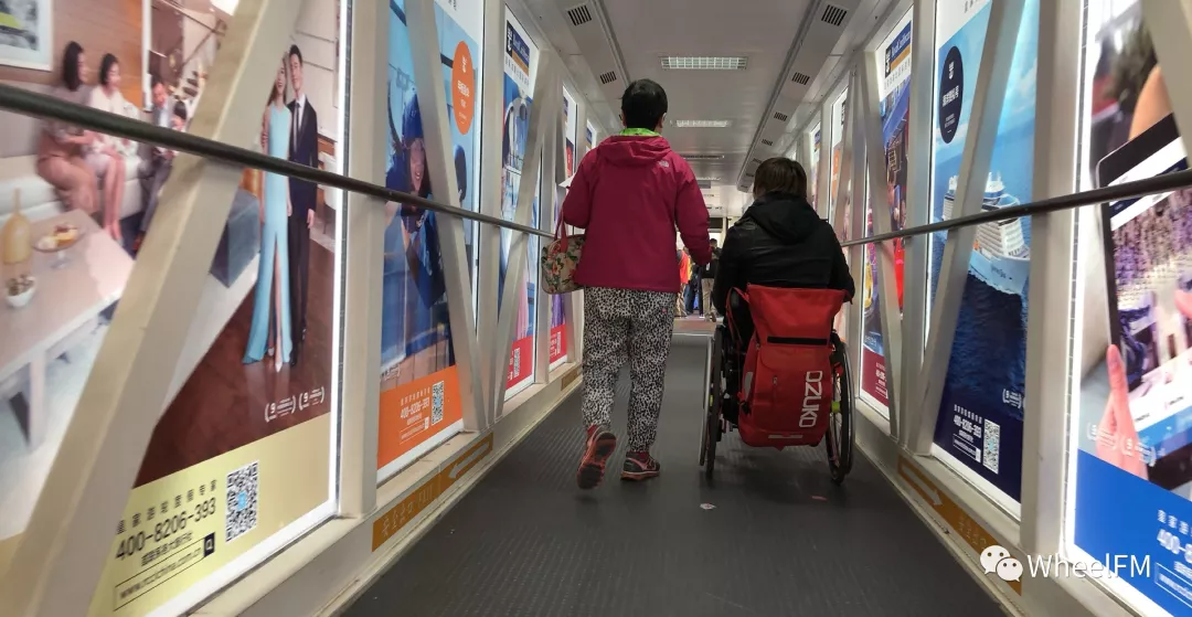 在排隊(duì)安檢的時(shí)候,突然聽(tīng)前邊一位大爺說(shuō),帶的杯子里不能有水,要不喝了要不就得倒了,然后在我們視線里的排隊(duì)的人們都拿出各種形形色色的水杯和水壺開(kāi)始喝水,我估計(jì)他們杯子里泡的不是枸杞就是什么什么的,我和宏姐也開(kāi)始喝,我倆分別用的是個(gè)700ML的杯子,一只手開(kāi)著車頭,一只手端著杯子喝水,到安檢口實(shí)在喝不動(dòng)了,我問(wèn)工作人員,是都得喝了嗎,工作人員笑笑說(shuō),喝一口就行……兩個(gè)大包過(guò)了安檢機(jī),安檢的兩位姑娘開(kāi)始嘀咕,然后其中一位特別嚴(yán)肅的跟我說(shuō),先生,您包里裝了什么?我們通過(guò)顯示屏發(fā)現(xiàn)您包里有大量的管裝物體,這都是什么?呃……我趕緊解釋,這是我們用的衛(wèi)生用品,導(dǎo)尿管,然后我從我輪椅下的小包拿出一根給她看,姑娘表示,明白了…整個(gè)天津游輪母港的無(wú)障礙還是相對(duì)不錯(cuò)的,從無(wú)障礙停車位到緣石坡道,無(wú)障礙衛(wèi)生間也還不錯(cuò)……整個(gè)大廳有兩個(gè)無(wú)障礙衛(wèi)生間。
