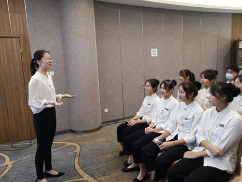 此次培訓(xùn)特邀到具有豐富教學(xué)和實(shí)踐經(jīng)驗(yàn)的海南文昌市中等職業(yè)學(xué)校高星級(jí)飯店運(yùn)營(yíng)與管理專業(yè)教研組組長(zhǎng)劉慶媚老師講課。劉老師以“成為卓越酒店人系列培訓(xùn)——禮儀篇”為題,從理論和實(shí)際操作兩個(gè)層面分別對(duì)賓客的需求、規(guī)范的儀容儀表、優(yōu)雅的儀態(tài)、專業(yè)的服務(wù)用語、酒店意識(shí)五方面進(jìn)行了專業(yè)、詳細(xì)、深入的講解,特別是重點(diǎn)講解了“標(biāo)準(zhǔn)、衛(wèi)生、公關(guān)、成本與效益、銷售、安全、服務(wù)”等意識(shí)。講解過程中,還現(xiàn)場(chǎng)邀請(qǐng)參訓(xùn)服務(wù)員代表上臺(tái),進(jìn)行一對(duì)一的禮儀實(shí)操指導(dǎo),并到餐廳現(xiàn)場(chǎng)進(jìn)行全流程規(guī)范輔導(dǎo),針對(duì)餐飲服務(wù)禮儀中存在的問題,對(duì)每一個(gè)環(huán)節(jié)、動(dòng)作語言要領(lǐng)都進(jìn)行了反復(fù)演示、糾正。培訓(xùn)內(nèi)容充實(shí)、形式新穎,集“講解授課、示范說明、案例研討”三位一體,“互動(dòng)交流、情景模擬”穿插進(jìn)行,既有理論深度,又有實(shí)踐案例,整個(gè)培訓(xùn)過程輕松有趣、和諧向上,參訓(xùn)人員聽得津津有味,學(xué)得興趣盎然。
