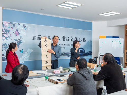 展示、交流環(huán)節(jié)持續(xù)近一個(gè)半小時(shí)?,F(xiàn)場(chǎng),大家時(shí)而交流用筆技巧,時(shí)而用手比劃設(shè)計(jì)布局。酣暢淋漓的書(shū)法沙龍讓殘疾人書(shū)法愛(ài)好者大飽眼福,收獲頗豐,紛紛坦言希望今后能多組織這樣的交流活動(dòng),不斷豐富殘疾人朋友的文化生活,提升大家的藝術(shù)鑒賞力!