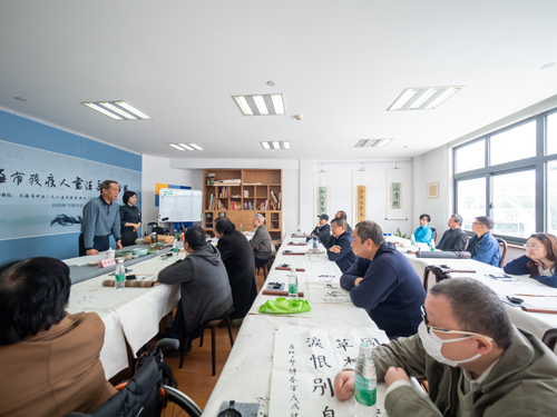 10月22日上午,由上海市殘疾人文化體育促進(jìn)中心主辦的上海市殘疾人書(shū)法交流沙龍?jiān)谥Z寶中心舉辦。活動(dòng)特邀國(guó)家一級(jí)美術(shù)師、上海市書(shū)法家協(xié)會(huì)常務(wù)理事鄭振華老師參加,來(lái)自全市各區(qū)的20多位殘疾人書(shū)法愛(ài)好者前往交流學(xué)習(xí)。
