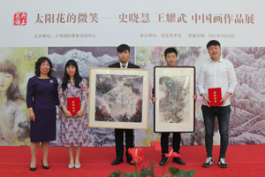 史曉慧、王耀武現(xiàn)場(chǎng)發(fā)表感言,感謝中心為他們舉行專場(chǎng)畫(huà)展,并向諾寶藝術(shù)館贈(zèng)送了《琴聲》、《奇峰麗翠》中國(guó)畫(huà)作品。顧秀萍總經(jīng)理接受了作品,向兩位畫(huà)家頒發(fā)了諾寶藝術(shù)館收藏證書(shū),還與史曉慧共同為“太陽(yáng)花的微笑”作品展揭牌。