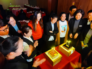 2月28日下午,公司一樓牡丹廳布置一新,正面大屏幕上,“我與公司共成長”的字眼格外醒目,五張鋪就整潔的大圓桌上,繽紛的賀卡、亮眼的蛋糕、精制的點心、琳瑯的水果和醇香的咖啡,營造出怡人暖心的氣氛……這是公司工會首次舉辦的員工集體生日活動的現(xiàn)場場面。