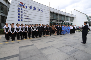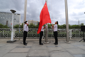 10時整,升旗儀式正式開始。三名旗手護(hù)衛(wèi)著五星紅旗,筆直站在升旗桿前。隨著激昂雄壯、催人奮進(jìn)的國歌樂起,旗手揚(yáng)旗向空,鮮艷的五星紅旗在空中冉冉升起,全體員工整齊列隊、衣著嚴(yán)整、昂首挺立、佇立凝望,以齊刷刷的注目禮表達(dá)對偉大祖國的崇高敬意和美好祝福。