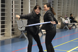 “螃蟹賽跑”尤為精彩。四人為一組,每兩人套在一個大的呼啦圈內,哨聲響起后,兩人仿效螃蟹走路,同時側身移動步伐,過程中手不能碰到呼啦圈,快速走到另一頭與另兩人接力。看似簡單的比賽,實際非??简瀮蓚€人的配合,如果協(xié)調不好速度,很難取得勝利。在緊張激烈競爭的移步中,真切體會到什么是兩人齊心協(xié)力,什么是團結一致。最后,會籍服務部的張麗萍、吳冉冉、王雯旋和人事行政部的徐春蘭四人組合配合默契,摘取桂冠。
