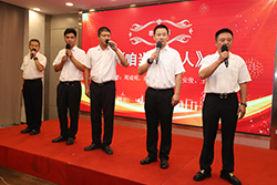 在一曲由5名退役軍人合唱的《咱當(dāng)兵的人》歌聲中,誦讀會(huì)拉開序幕。雄渾的聲音,堅(jiān)定的眼神,飽滿的熱情,激發(fā)了員工們的愛國熱情?!稙樽鎳鴬^斗》《我驕傲我是中國人》《祝福您—我的祖國》……由九個(gè)工會(huì)小組分別誦讀的激情澎湃的詩歌,感染著現(xiàn)場每一位觀眾,誦讀者們精神飽滿、感情真摯、聲音洪亮,時(shí)而聲音舒長,時(shí)而深情款款,時(shí)而慷慨激昂,他們的深情演繹和精彩表現(xiàn)點(diǎn)燃了全場,贏得了觀眾熱烈的掌聲。最后,諾寶“女歌唱家”孫佩珍引吭一曲《今天是你的生日》,將全場氣氛推向高潮。第三季度過生日的員工在活動(dòng)上吹蠟燭、默許愿、切蛋糕,為誦讀會(huì)增添了別樣樂趣。誦讀會(huì)上,還開展了黨史、新中國史知識競賽。