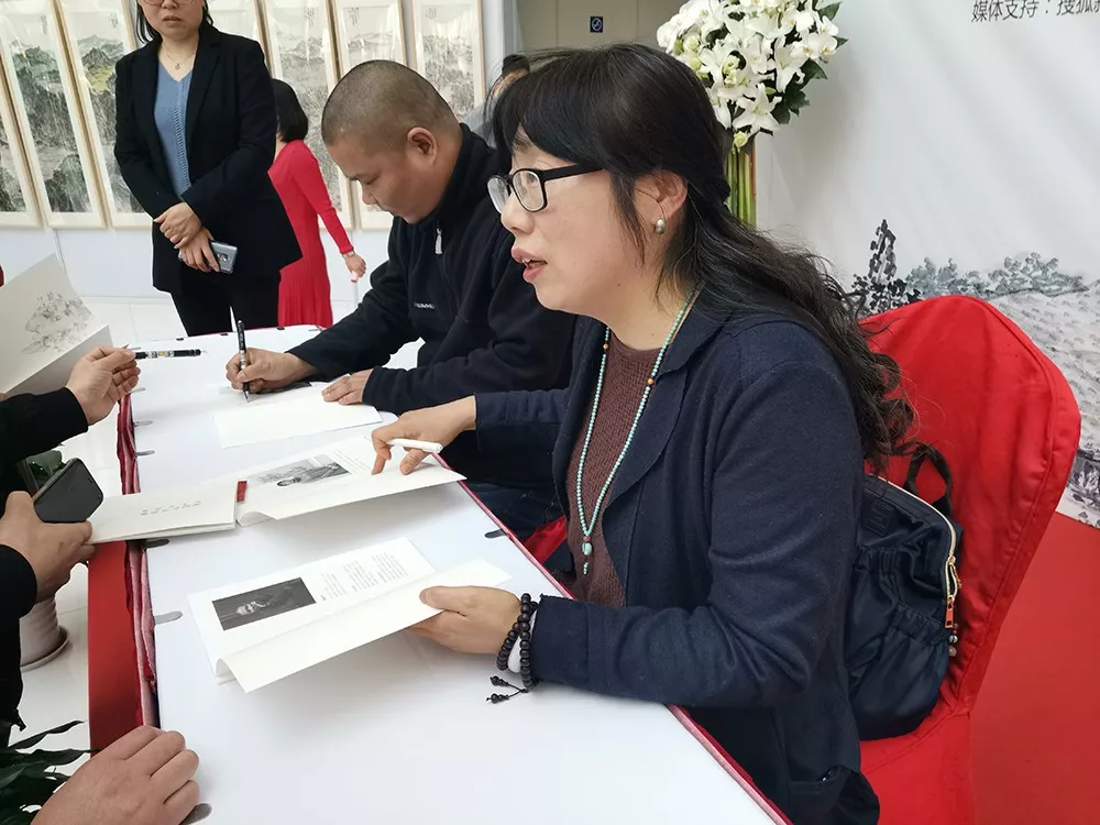 ▲施建中、李娟夫婦為參觀者簽名留念