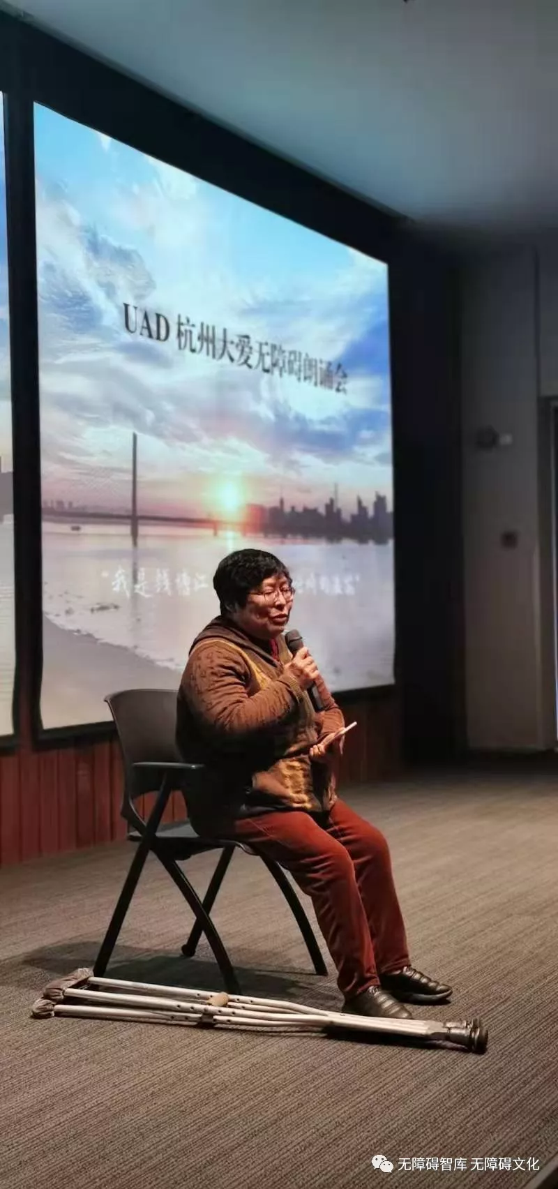 配合拍攝,由杭州市無障礙促進(jìn)會(huì)協(xié)助UAD無障礙研究所主辦了UAD大愛無障礙朗誦會(huì),節(jié)目豐富多彩,除殘障人士表演的朗誦外,還有輪椅夫婦的輪椅舞、盲人琵琶表演和來自杭州嘉綠苑中學(xué)學(xué)生的朗誦等,氣氛非常活躍。UAD還貼心地為來賓準(zhǔn)備了茶食。當(dāng)天錄制的部分鏡頭會(huì)插入到紀(jì)錄片中,給這部以反映問題為主題的片子增添了一抹亮色。UAD黨委書記呂淼華抱病前來觀摩,受現(xiàn)場(chǎng)氣氛感染,表示這樣的活動(dòng)今后要多多舉辦。