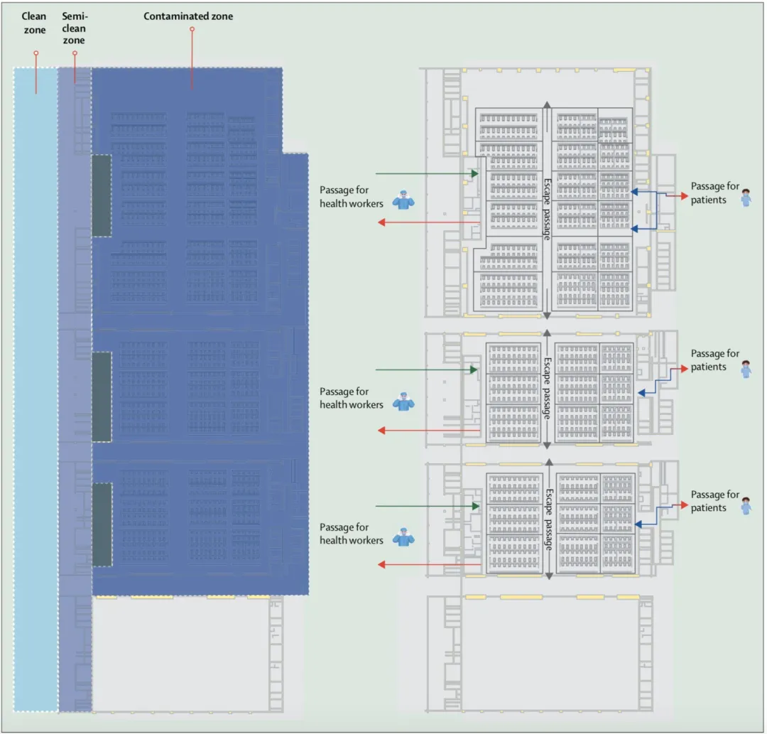 王辰等人在文章中首先指出:為應(yīng)對(duì)新冠疫情(COVID-19),中國(guó)首次采用了方艙醫(yī)院。方艙這個(gè)詞,在中文里聽(tīng)起來(lái)讓人聯(lián)想到“諾亞方舟”,它有點(diǎn)類似野戰(zhàn)移動(dòng)類醫(yī)院,但它指的又是一個(gè)新穎的概念:大的、臨時(shí)建立的醫(yī)院,一般由公共建筑(如體育場(chǎng)館、展覽中心)改建而來(lái),用來(lái)將輕度至中度癥狀的傳染病患者和家庭、社區(qū)隔離開(kāi)來(lái),同時(shí)提供醫(yī)療照顧、疾病檢測(cè)、食物、住所及社會(huì)活動(dòng)。