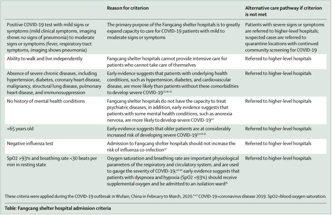 第二個(gè)基本功能是分診。方艙醫(yī)院為中國(guó)的衛(wèi)生系統(tǒng)增加了一個(gè)額外的護(hù)理水平,從而為COVID-19患者提供了一個(gè)戰(zhàn)略性的分診功能。符合入院條件的輕度至中度COVID-19患者在方艙醫(yī)院隔離治療,而重癥至危重COVID-19患者在傳統(tǒng)醫(yī)院接受治療。