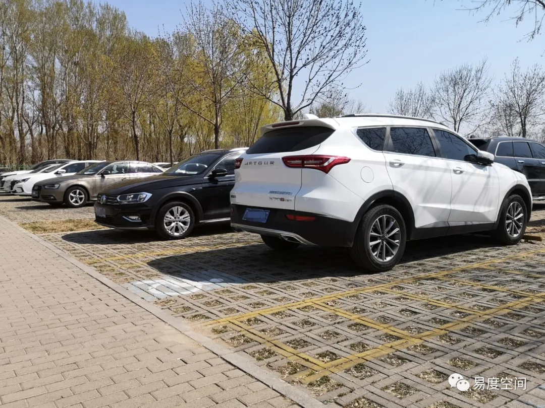 停車位的尺寸很標(biāo)準(zhǔn),車輛的一側(cè)有寬1.2米的無(wú)障礙通道。但地面鋪裝均采用了植草磚,會(huì)對(duì)拄拐杖者或者穿高跟鞋的女士造成困擾,從無(wú)障礙的角度來(lái)說(shuō)是不合格的設(shè)計(jì)。