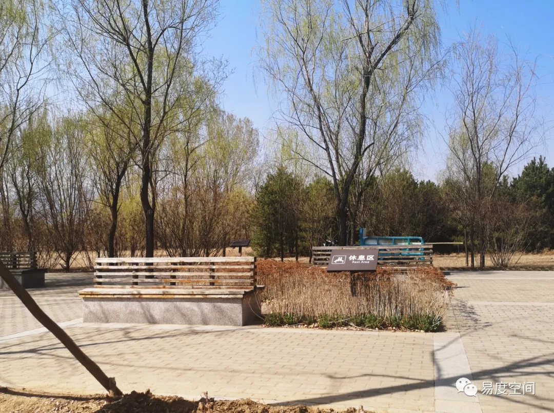 ▲通往湖面甬道北側(cè)的休息區(qū)