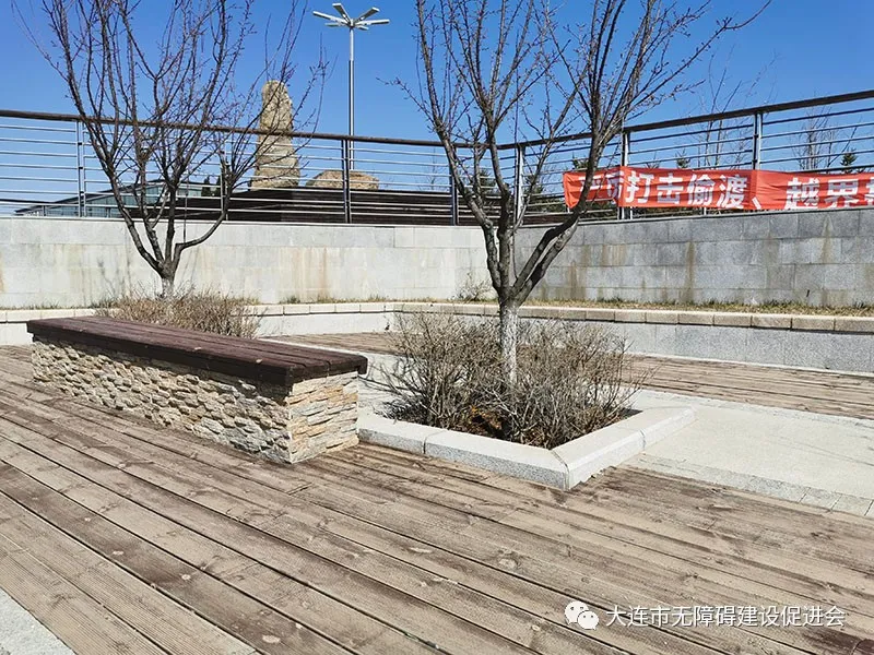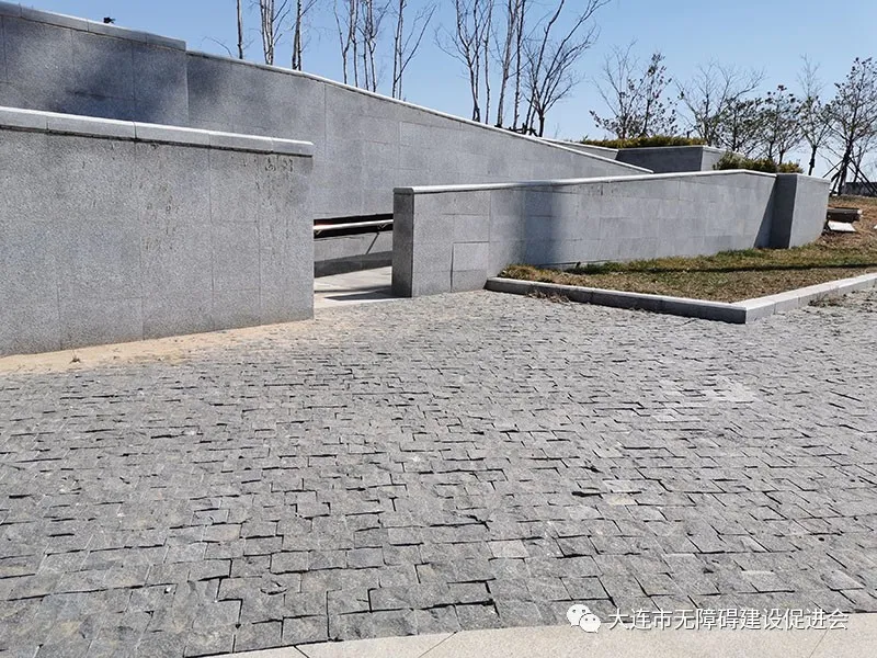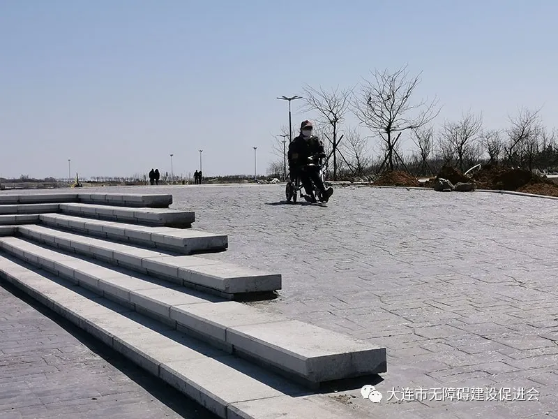 園路是公園的重要組成部分、是連接景觀的基本要素。它像脈絡(luò)一樣把各個(gè)景觀和景區(qū)連接起來(lái),起到組織空間、引導(dǎo)游覽、聯(lián)絡(luò)交通等作用。之所以選擇園路作為分析對(duì)象,主要因?yàn)閳@路無(wú)障礙設(shè)計(jì)是目前公園設(shè)計(jì)的短板。比如:大連國(guó)際雕塑公園只有主出入口有無(wú)障礙坡道——從這里入園,只能從這里出園。園區(qū)內(nèi)環(huán)繞的多層臺(tái)階不僅阻礙特殊群體接近雕塑,也將整個(gè)園區(qū)分為兩部分。東港海濱木棧道也存在類似問(wèn)題:無(wú)障礙坡道集中在主出入口,其他出入口都沒(méi)有無(wú)障礙設(shè)施;木棧道沿途也有無(wú)障礙坡道,但設(shè)置較為隨意,沒(méi)有體現(xiàn)出最佳路線。星海公園在2018年改造之后,園路多采用馬蹄石、龜裂石,凹凸不平,甚至帶有尖銳棱角,沒(méi)有兼顧藝術(shù)與安全便利。