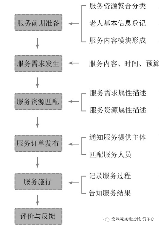 基于 “互聯(lián)網+”的社區(qū)養(yǎng)老模式探究——互聯(lián)網技術在養(yǎng)老服務中的運用 劉也,王小榮 摘要:基于我國高漲的信息技術水平、稀缺的為老服務資源,互聯(lián)網+養(yǎng)老的方式成為一個必然趨勢。本研究尋求互聯(lián)網技術與養(yǎng)老服務的結合點,探究互聯(lián)網技術在社區(qū)養(yǎng)老服務與管理中的應用。以SPSS軟件對大量調研數(shù)據(jù)進行統(tǒng)計分析為手段,闡述大數(shù)據(jù)分析指導養(yǎng)老服務匹配的過程,提煉老人的普遍需求特征,以此對養(yǎng)老服務功能模塊進行設定。同時,根據(jù)老人所需的服務類型將社區(qū)服務資源進行整合與分類,形成服務供給主體構架,并梳理服務流程,進一步完善社區(qū)智慧養(yǎng)老虛擬平臺。 關鍵詞:互聯(lián)網+養(yǎng)老,服務模塊,資源整合,服務流程 國家重點研發(fā)計劃資助,既有居住建筑宜居改造及功能提升關鍵技術,項目號:2017YFC0702900,課題編號:2017YFC0702905; 國家自然科學基金青年基金資助,基于光熱環(huán)境綜合優(yōu)化的養(yǎng)老設施建筑設計研究——以天津為例,項目批準號:51708393 1 研究背景 我國人口老齡化程度高、發(fā)展速度快,且大量缺乏養(yǎng)老照護勞動力,養(yǎng)老形勢嚴峻。根據(jù)民政部公布的數(shù)據(jù)顯示,預計到2025年全國60歲以上老年人口將增加到3億,我國將成為超老齡型國家?;谖覈邼q的信息技術水平、稀缺的為老服務資源,互聯(lián)網+養(yǎng)老的方式成為一個必然趨勢。2017年《“十三五”國家老齡事業(yè)發(fā)展和養(yǎng)老體系建設規(guī)劃》提出要建設虛擬養(yǎng)老院,應用智能終端、智慧平臺、信息系統(tǒng)等技術手段加強信息化的養(yǎng)老規(guī)劃。事實上,我國智慧養(yǎng)老實踐處于初級階段,還存在法律規(guī)范不健全、服務系統(tǒng)尚不完善等問題。 與傳統(tǒng)養(yǎng)老模式相比,互聯(lián)網技術使得老年服務的供需配置手段得以更新。本文分析互聯(lián)網技術在社區(qū)養(yǎng)老中的作用,并從養(yǎng)老服務功能模塊設定、服務資源整合、服務流程梳理三方面闡述互聯(lián)網技術在社區(qū)養(yǎng)老中的運用,為服務資源供需匹配提供方式參考,以期完善基于互聯(lián)網+的社區(qū)養(yǎng)老虛擬平臺,以期為老年人提供更高效高質的服務。 2 互聯(lián)網技術在社區(qū)養(yǎng)老中的作用 我國互聯(lián)網技術發(fā)展迅速,隨著各大電商平臺、移動出行平臺等的成功運行,使得基于網絡平臺的養(yǎng)老服務方式也具有更大的可行性?;ヂ?lián)網+養(yǎng)老系統(tǒng)主要由線上數(shù)據(jù)處理平臺、線下服務資源、智能終端三大板塊構成,共同形成一個閉合的服務供需鏈[1]。與傳統(tǒng)的進入養(yǎng)老院直接接受服務的養(yǎng)老模式相比,互聯(lián)網技術能聯(lián)結物聯(lián)網、利用大數(shù)據(jù)分析等技術手段,使得互聯(lián)網+養(yǎng)老模式能豐富一定地域內的服務資源類型;能增強服務主體間的信息互通性;能有效把握老人數(shù)據(jù)信息,更快更準更便捷的為老人提供服務。 2.1收集、管理與運用老人數(shù)據(jù) 數(shù)據(jù)管理平臺收集并存儲大量老人的基本信息數(shù)據(jù),并對服務消費主體信息進行剖析,提煉出老人的普遍特征,形成數(shù)據(jù)資源庫。利用大數(shù)據(jù)技術能篩選服務對象、管理老人檔案,更重要的是實現(xiàn)對數(shù)據(jù)的利用能推斷或預測養(yǎng)老服務的發(fā)展方向,能提高養(yǎng)老服務與管理效率。 2.2管理與整合服務資源 互聯(lián)網技術將線下的社區(qū)服務供給主體納入平臺,并對服務提供商進行分類管理,形成能為老人提供多類型、多層級的服務資源系統(tǒng),使服務供給更便捷。整合服務資源的同時對服務供給主體進行統(tǒng)一管理,利于服務資源合理配置。 2.3實現(xiàn)服務供需主體間信息互通 互聯(lián)網成為老人、老人家屬、服務提供商、服務人員之間信息互通的線上渠道?;ヂ?lián)網將服務供給主體的基本信息、主要特色、服務內容、活動信息等在電腦網頁、微博、微信或專門的養(yǎng)老應用上等直觀的呈現(xiàn)給每一位需求者,服務消費主體無需進行實地考察及咨詢,就能對各大服務供給主體進行對比、分析、選擇。服務信息的傳遞不在受制于空間限制,使得老人選擇服務主體、服務內容的過程更高效便捷,能減少因信息閉塞而服務分配不到位的情況。 一方面,服務消費主體通過互聯(lián)網獲取更準確的服務信息,另一方面,服務供給主體能及時獲得來自消費者的服務評價及反饋,有利于服務提供商及服務人員進行自我評價與優(yōu)化。 3 基于數(shù)據(jù)分析的養(yǎng)老服務功能模塊設定 3.1調研數(shù)據(jù)分析——服務模塊設定的基礎 表1 老人對各項社區(qū)養(yǎng)老服務的需求意愿 該課題組在2018年6-8月在全國30座城市進行了實地考察及問卷調研,獲得了由老人填寫的有效問卷1198份。通過對老人需要的社區(qū)服務項目進行調查發(fā)現(xiàn),老人對健康護理類的服務需求最高,如入戶醫(yī)療、上門護理或照料;老人對基礎生活輔助類服務的需求較高,如物業(yè)生活瑣事服務(家電水電維修、換燈泡等)、家政服務、食品配送服務、居委會或街道行政服務,還有陪同服務、出行協(xié)助等;