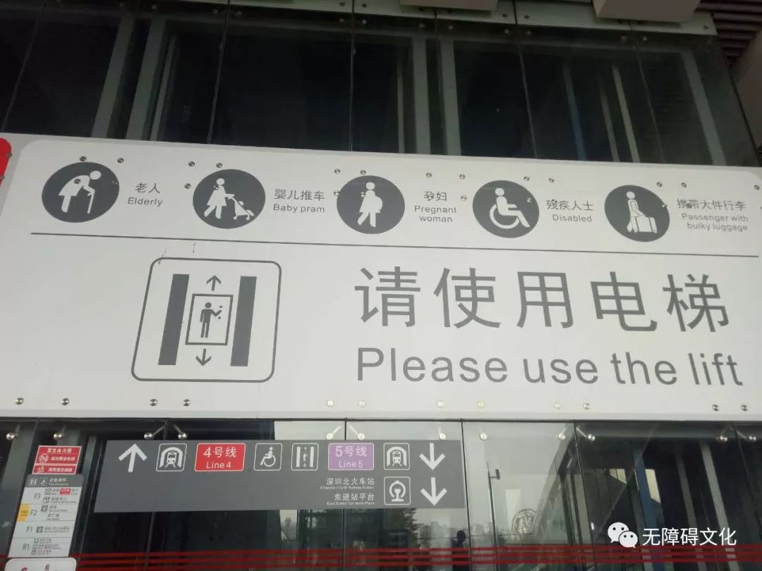7、對(duì)深圳人性化無障礙標(biāo)識(shí)的認(rèn)識(shí)。深圳地鐵換乘指示標(biāo)識(shí)比較醒目,深圳北站直梯口可見大標(biāo)識(shí),很遠(yuǎn)即見方便換乘。