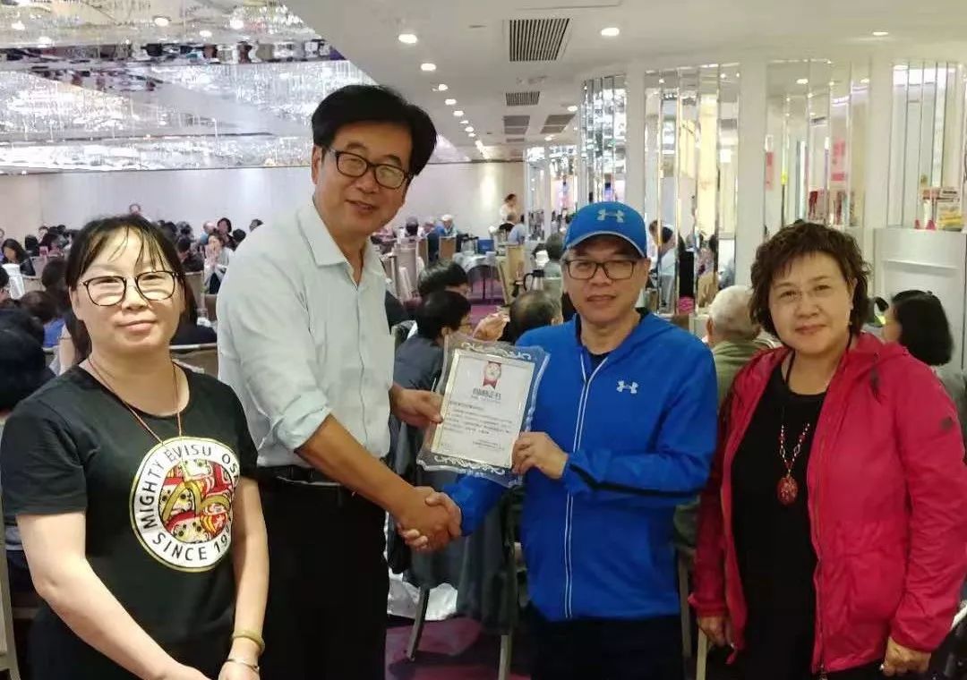 研修營(yíng)領(lǐng)隊(duì)呂志強(qiáng)教授、張燕春助理向香港傷青會(huì)鍾錦樹副主席、何雪梅秘書長(zhǎng)贈(zèng)答謝狀