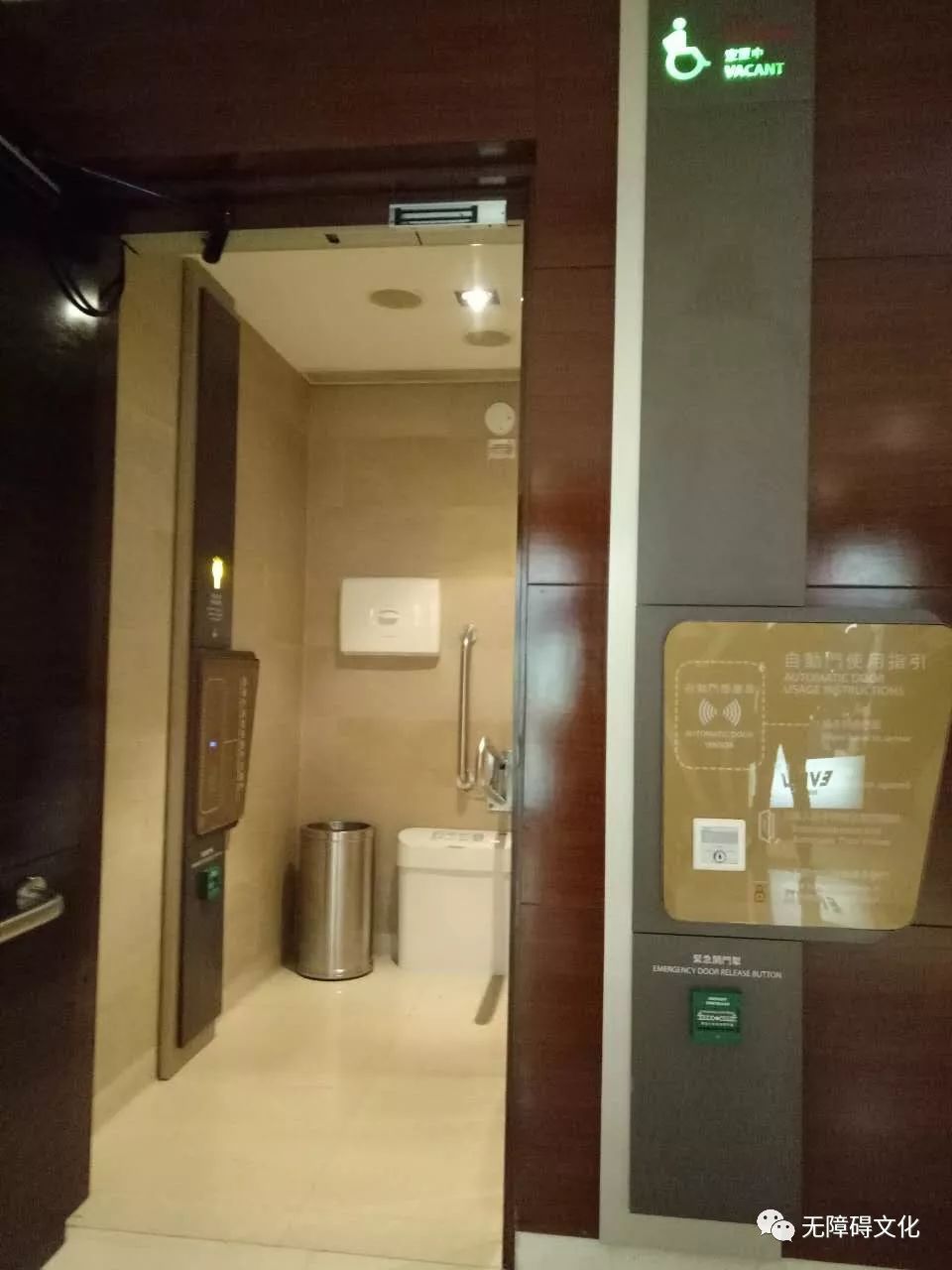 圓方內(nèi)部無障礙洗手間、感應(yīng)門、指示燈等