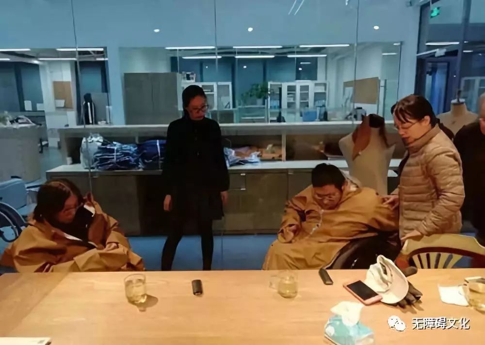 11月19日,在北京服裝學(xué)院進(jìn)行無障礙風(fēng)雨衣的試衣體驗(yàn)及交流,提出需要改進(jìn)的方面;