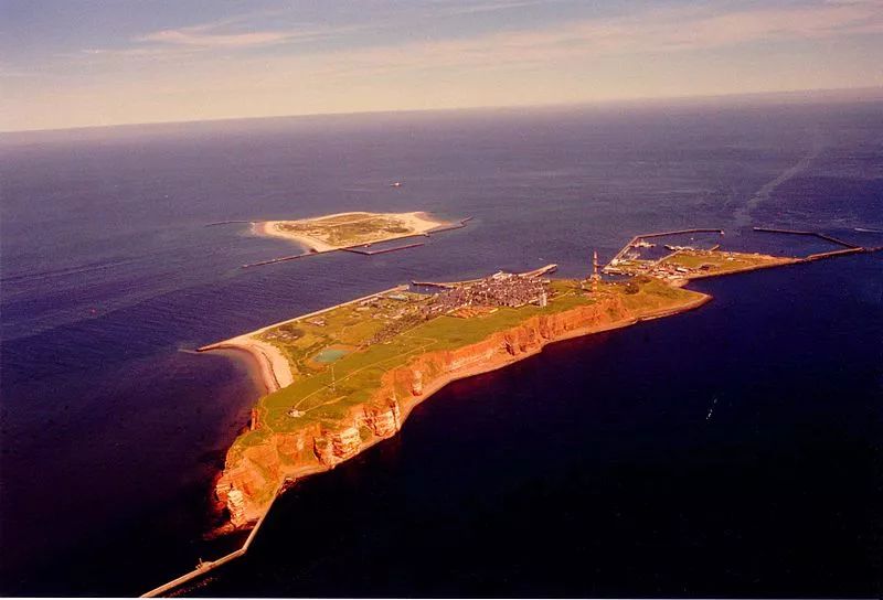 黑爾戈蘭島鳥瞰圖【1】。黑爾戈蘭島由兩個小島組成。只有1平方公里的主島以及0.7平方公里的多恩島。