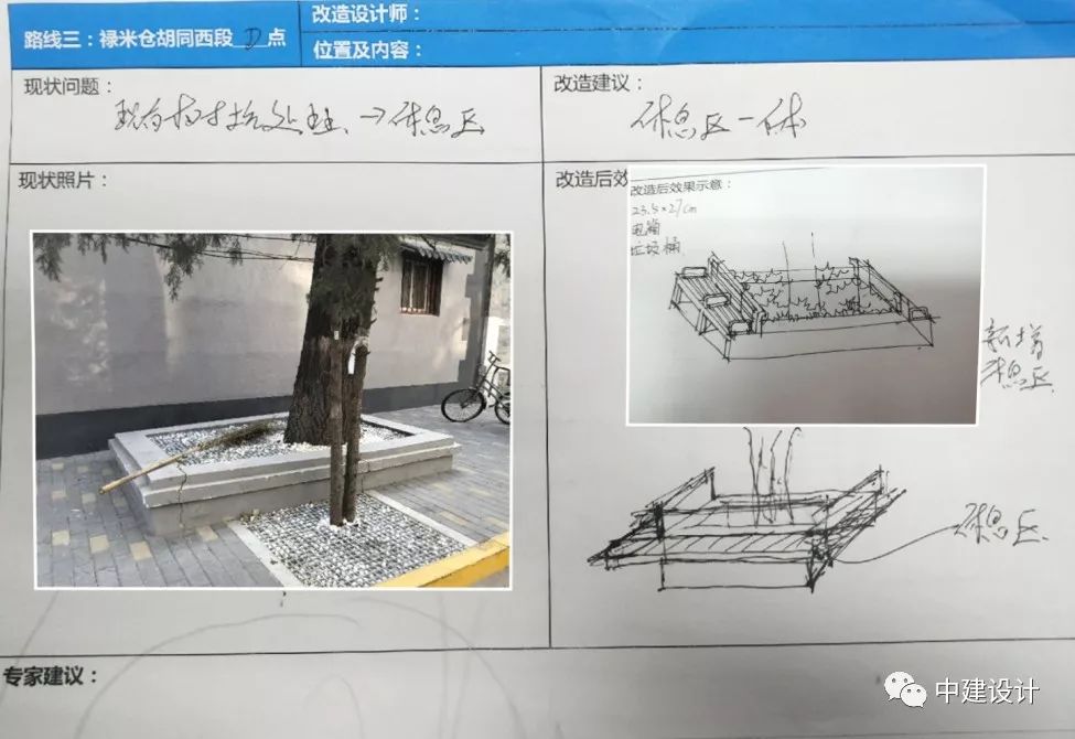 改造建議:將樹坑和休息區(qū)一體化設(shè)計
