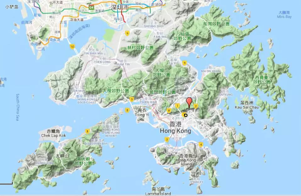 香港地形圖:大約650km2(約60%陸地總面積)屬天然山坡,不適宜開發(fā)(Google Map)