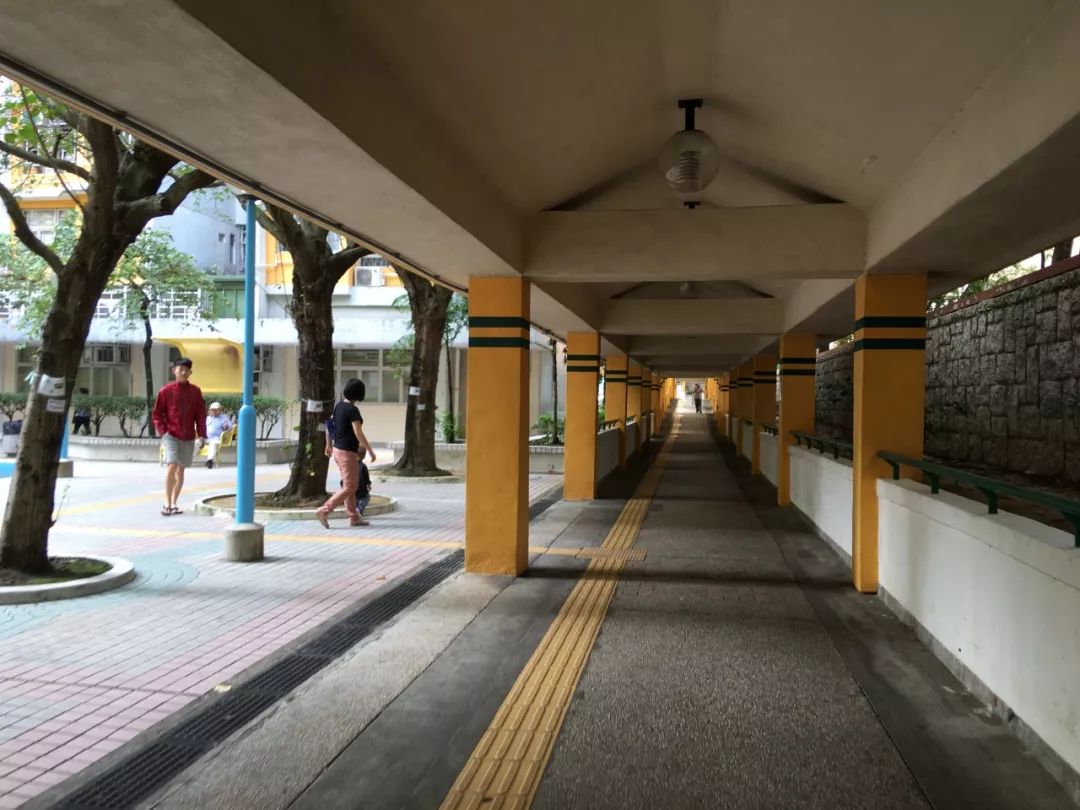 黃大仙公共屋邨始建于上世紀60年代,那時的環(huán)境設計就已經非常人性化:有頂蓋的全天候風雨走廊貫穿各個小區(qū)出入口(盡管混凝土構造有些粗笨),與地鐵站無縫對接;社區(qū)設計盡顯人性關懷,無障礙設施考慮得很細致,輪椅出行很順暢;社區(qū)內部的公共空間即便窄小,也會見縫插針地設置多種用途的活動場所,兼顧老幼之需。