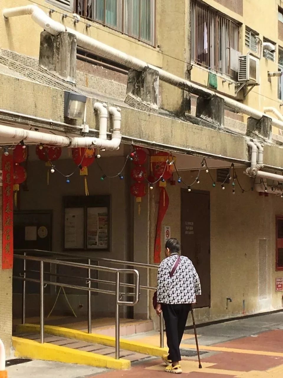 黃大仙下邨的單元樓入口,帶扶手的無障礙坡道 ?嚴奉煥