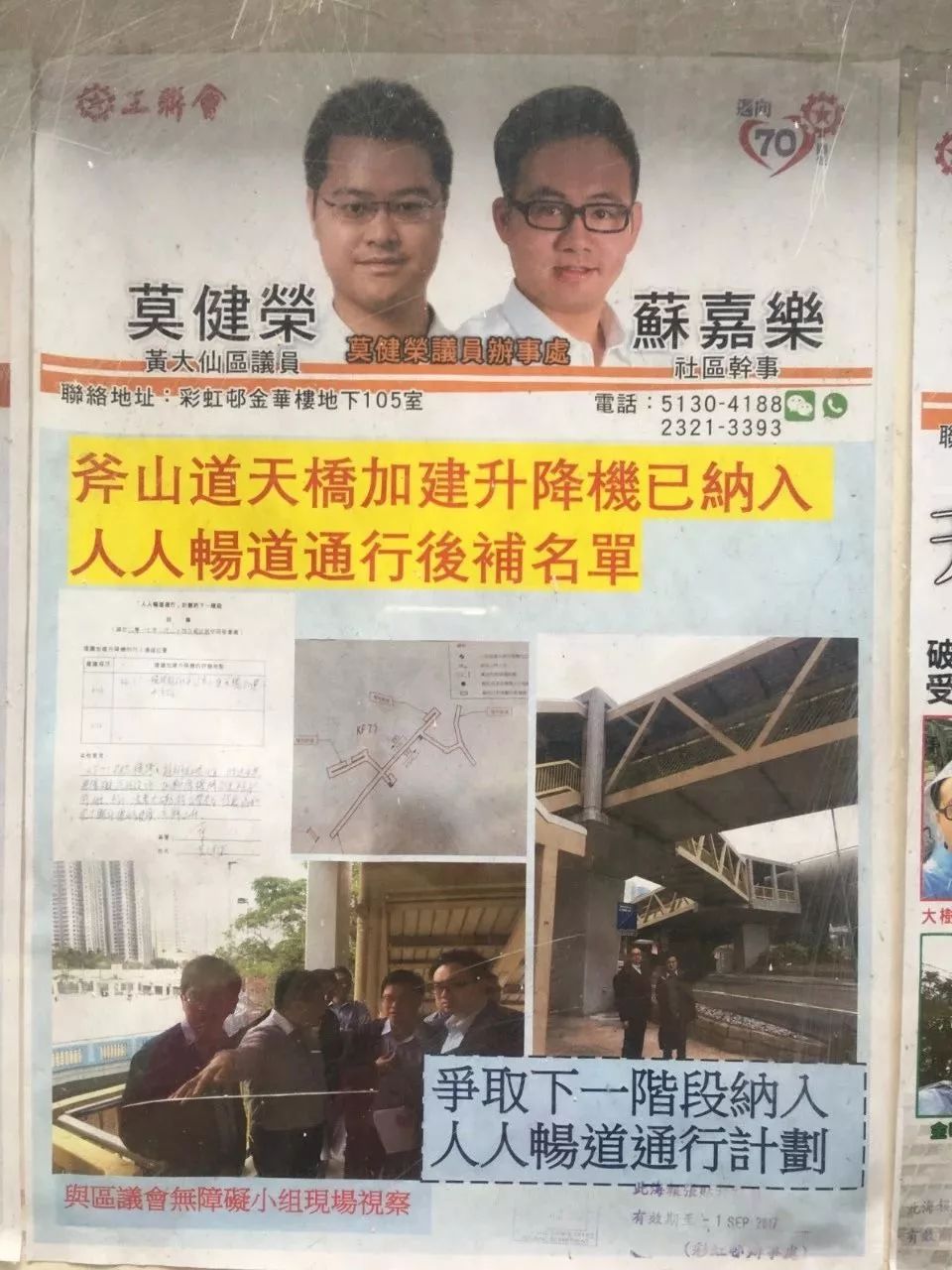 分區(qū)香港立法會議員在屋邨張貼服務市民的宣傳畫,下情上達,為民請愿 ?嚴奉煥