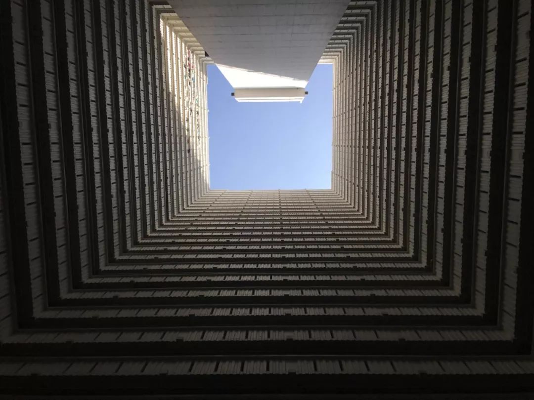 單元樓設計城四面圍合式布局,單邊走廊,形成獨特的建筑畫面 ?嚴奉煥