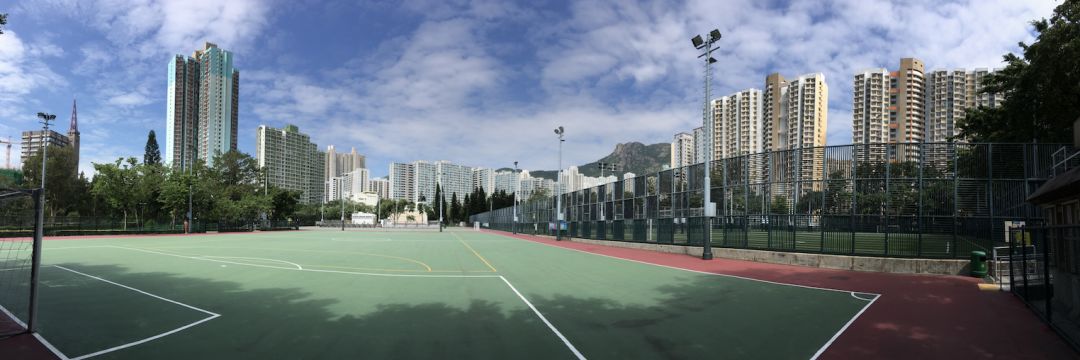 黃大仙區(qū)的摩士公園。運動場四周高樓林立,運動場地設施建造標準很高。背景為獅子山。?嚴奉煥