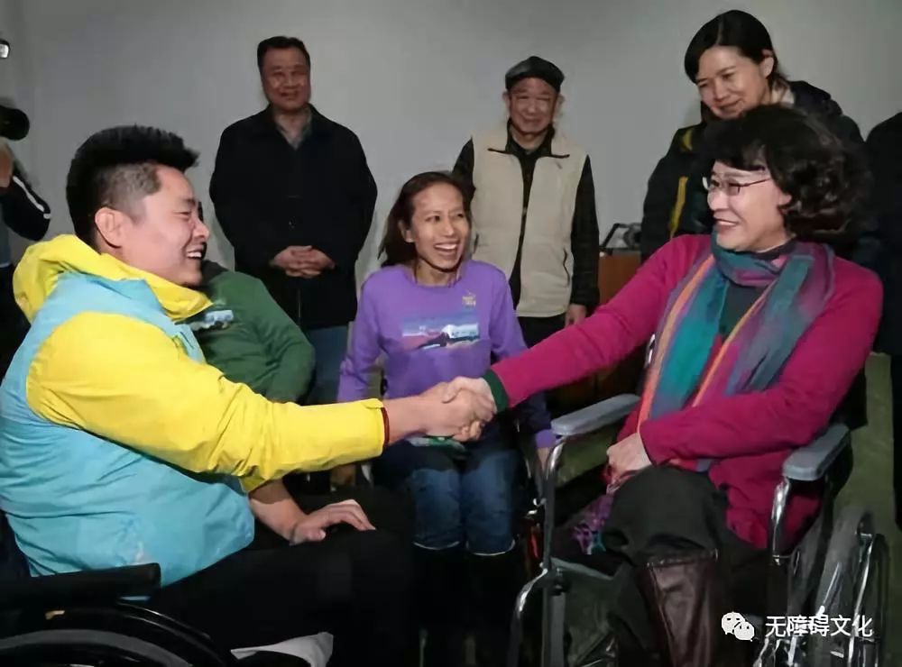 張海迪主席視察北京市希望之家給小潘以鼓勵(lì)