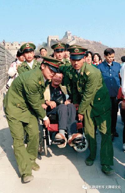 1988年3月,中國殘聯(lián)第一次代表大會時,呂世明副主席是一個親歷見證者。當(dāng)時與會的肢殘人代表有許多是用兩只手爬行著進(jìn)出會場,或是用兩只胳膊撐著一個小板凳、或劃著小滑輪車進(jìn)出會場,當(dāng)年的輪椅也算是奢飾品。絕大多數(shù)殘疾人代表是第一次參加代表大會、第一次到北京來、第一次到天安門和長城。當(dāng)時調(diào)動了一個連的武警戰(zhàn)士上百人,4、5位戰(zhàn)士負(fù)責(zé)抬一個重度殘疾人,從長城腳下硬是把幾十位重度殘疾人推、拉、扛、抬上了長城的烽火臺。3月的北京很寒冷,可是抬著他的五位戰(zhàn)士汗流浹背、氣喘吁吁,但是他們的雙腿卻始終堅挺著穩(wěn)穩(wěn)前行。到了長城三分之二段時,他真是于心不忍了,再三勸戰(zhàn)士們止步,他們堅決不同意,無奈之下只能說自己的身體支撐不了了,他們這才勉強(qiáng)停下。上長城不易,下長城則更難了,還要保證絕對安全。所以這個情景在他的心靈深處,一輩子也忘不了。雖然“不到長城非好漢”是呂世明心中期盼以久的夢,但他下定決心,如果是讓人家抬,就再也不上長城了!