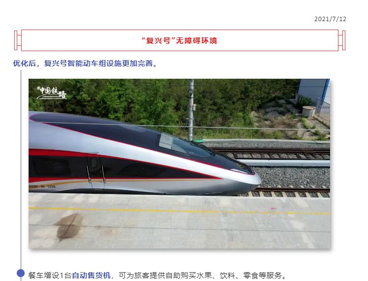 復(fù)興號智能動車組6月25日集中上線運行,主要擔(dān)當(dāng)北京至哈爾濱、吉林、沈陽、上海、杭州、石家莊、廣州、西安間以及成都至重慶間運行速度高、旅行時間短的高鐵列車,歡迎廣大旅客體驗乘坐并提出寶貴意見建議。