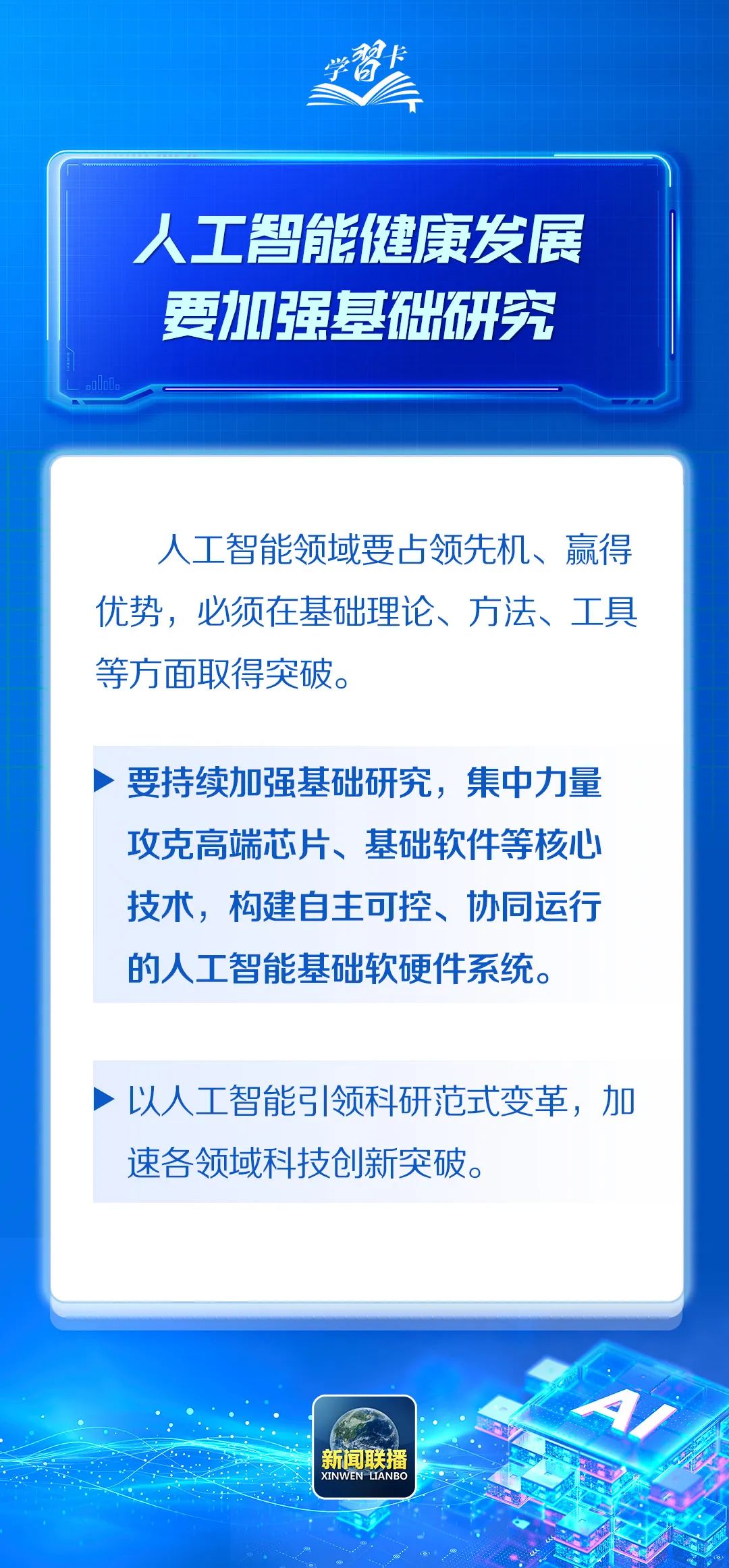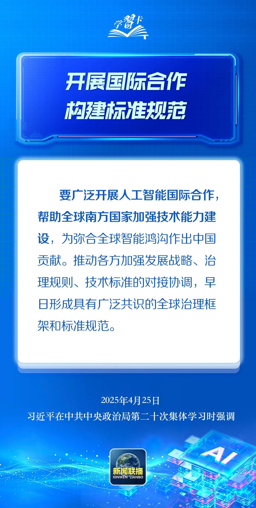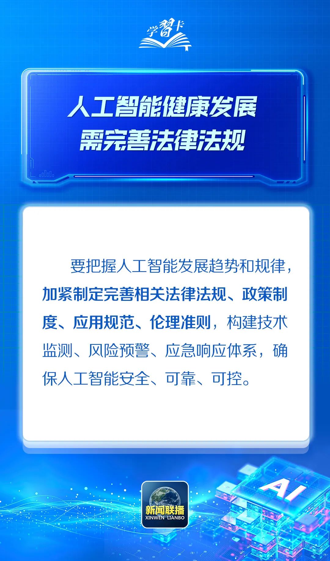 4月25日,中共中央政治局就加強人工智能發(fā)展和監(jiān)管進行第二十次集體學習。習近平總書記在主持學習時強調(diào),堅持自立自強,突出應(yīng)用導(dǎo)向,推動我國人工智能朝著有益、安全、公平方向健康有序發(fā)展。一起學習↓