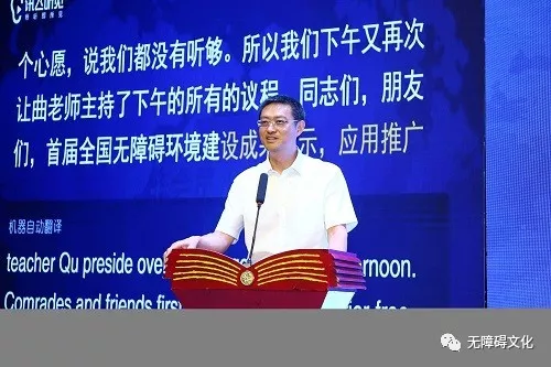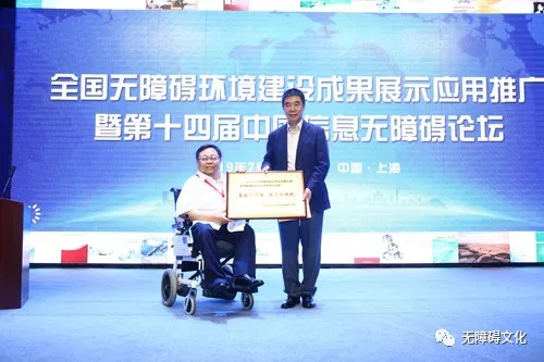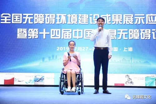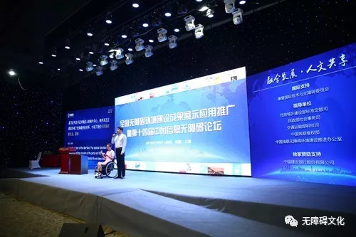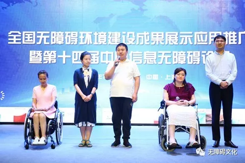 上海廣播電視臺(tái)全國(guó)優(yōu)秀助殘志愿者曲大鵬走上前臺(tái)唐占鑫在主持中說,今天我的內(nèi)心特別激動(dòng)。因?yàn)槿昵暗慕裉?月28日,習(xí)近平總書記來到唐山市截癱療養(yǎng)院,在那里看望同我一樣,因?yàn)橐馔鈱?dǎo)致高位截癱的殘疾人朋友并且提出“全面建成小康社會(huì),殘疾人一個(gè)也不能少”這是習(xí)近平總書記對(duì)殘疾人的格外關(guān)心,格外關(guān)注。正是因?yàn)橛辛它h和政府的關(guān)懷,才有了我們今天美好的生活。在今天的會(huì)場(chǎng),我看到了有這么標(biāo)準(zhǔn)舒緩的上臺(tái)坡道,有科大訊飛語音與文字自動(dòng)轉(zhuǎn)換的大屏幕,讓我和王凱登臺(tái)非常方便,讓我實(shí)現(xiàn)了當(dāng)主持人的夢(mèng)想,也讓坐在第一排的那么多聾人朋友“聽”到了一個(gè)個(gè)精彩的成果展示,真的是太美妙、太幸福了!王凱是中國(guó)殘疾人藝術(shù)團(tuán)一名歌唱演員,天生視障的他雖然有一雙大眼睛可只能有微微的光感,在主持中說到無障礙環(huán)境,他也非常激動(dòng),他說,再過兩天就是8月1日了,今年的8月1日是國(guó)務(wù)院《無障礙環(huán)境建設(shè)條例》實(shí)施七周年,正是因?yàn)橛辛谁h(huán)境無障礙和信息無障礙,我的心才更亮了,生活也更加豐富多彩。如今有電腦、手機(jī)、互聯(lián)網(wǎng)等無障礙設(shè)施的陪伴,我可以獨(dú)自一人自由出行,我也到過許多的地方,出訪過許多國(guó)家去演出,我從內(nèi)心感謝無障礙,感謝從事無障礙推進(jìn)工作的人們!