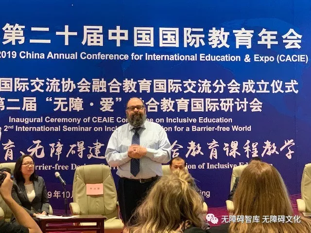 中國殘聯(lián)副主席呂世明在講話中首先對中國教育國際交流協(xié)會舉辦第二屆“無障?愛”融合教育國際研討會并成立融合教育國際交流分會表示熱烈祝賀!他指出,這是彰顯社會責(zé)任、踐行人道主義情懷的善行義舉。通過倡導(dǎo)理念、培育意識、立德樹人,把融合教育的無障礙理念在中國大地乃至世界發(fā)揚光大。融合教育是無障礙理念與實踐的重要嫁接內(nèi)容之一,是實現(xiàn)人人享有公平教育權(quán)利的重要保障。以習(xí)近平同志為核心的黨中央,對殘疾人事業(yè)對殘疾人格外關(guān)心、格外關(guān)注,重視無障礙環(huán)境建設(shè)及特殊教育發(fā)展。無障礙環(huán)境惠及到廣大殘疾人乃至社會全體成員,日益獲取幸福感、獲得感和安全感。今年5月16日,習(xí)近平總書記親切會見來自全國受到表彰的自強模范和助殘先進集體及個人,全體代表中就有大批從事特殊教育的教師學(xué)者以及聽障和視障優(yōu)秀代表。在無障礙環(huán)境建設(shè)中,我們特別注重信息交流無障礙,特別注重針對聽障視障特殊教育的融合無障礙。在高考中,無障礙的便利服務(wù)助力我國殘障大學(xué)生憑借自身能力和才華考入高等院校連續(xù)兩年突破了萬人。國家制定發(fā)布實施了通用手語、通用盲文和漢語手指字母等規(guī)范標(biāo)準,為聾人教育、盲人教育制定了一系列的標(biāo)準體系;中國殘聯(lián)無障礙環(huán)境建設(shè)推進辦公室、中國聾人協(xié)會會同科大訊飛集團、北京聯(lián)合大學(xué)共同組建了“聽見信息無障礙研發(fā)與應(yīng)用聯(lián)合實驗室”,為聽健者與聽障者之間交流順暢無障礙搭建高端科研平臺。全方位的無障礙為特殊教育、融合教育的發(fā)展插上了翅膀。在剛剛舉辦的2019年“一帶一路”框架下殘疾人事務(wù)主題活動,無論是無障礙,還是康復(fù)、教育、體育、社會治理等各分論壇,都傳遞了一個強烈的信息,那就是明年我國將進入全面小康社會,將實現(xiàn)習(xí)近平總書記提出的“全面建成小康社會,殘疾人一個也不能少”的宏偉目標(biāo)。融合教育也必將進入尊重差異、包容多樣、和諧發(fā)展的春天。
