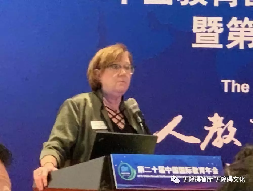 第一階段:聾人教育專題研討會交流現(xiàn)場,美國圣克勞德州立大學(xué)孔子學(xué)院院長Kathryn E.Johnson主持