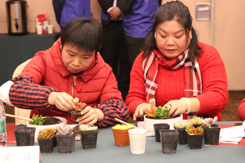 為了活躍會(huì)議氣氛,區(qū)精協(xié)還邀請(qǐng)老師為與會(huì)者開(kāi)展多肉植物培訓(xùn),從多肉植物的發(fā)展、特點(diǎn),分類(lèi)、生長(zhǎng)習(xí)性和養(yǎng)護(hù)要點(diǎn)幾個(gè)方面進(jìn)行了講授,讓與會(huì)者們了解了多肉植物的品性等知識(shí)。大家根據(jù)老師的現(xiàn)場(chǎng)指導(dǎo),自己動(dòng)手制作了多肉植物的盆栽。