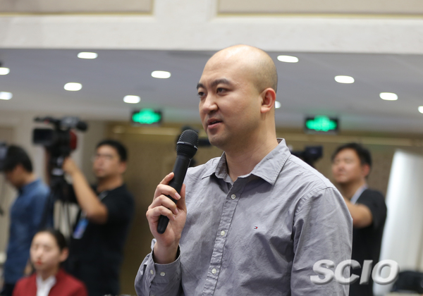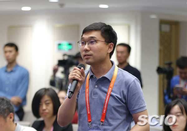 中央廣播電視總臺(tái)國(guó)廣記者提問(wèn)(張晗 攝