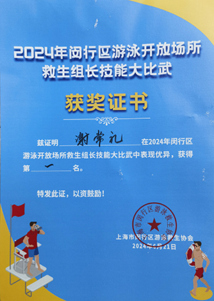 6月21日下午,在閔行區(qū)梅隴鎮(zhèn)文化體育中心游泳館舉行的2024年閔行區(qū)游泳開放場所救生組長技能大比武賽事中,諾寶中心游泳館選手謝常禮榮獲冠軍。