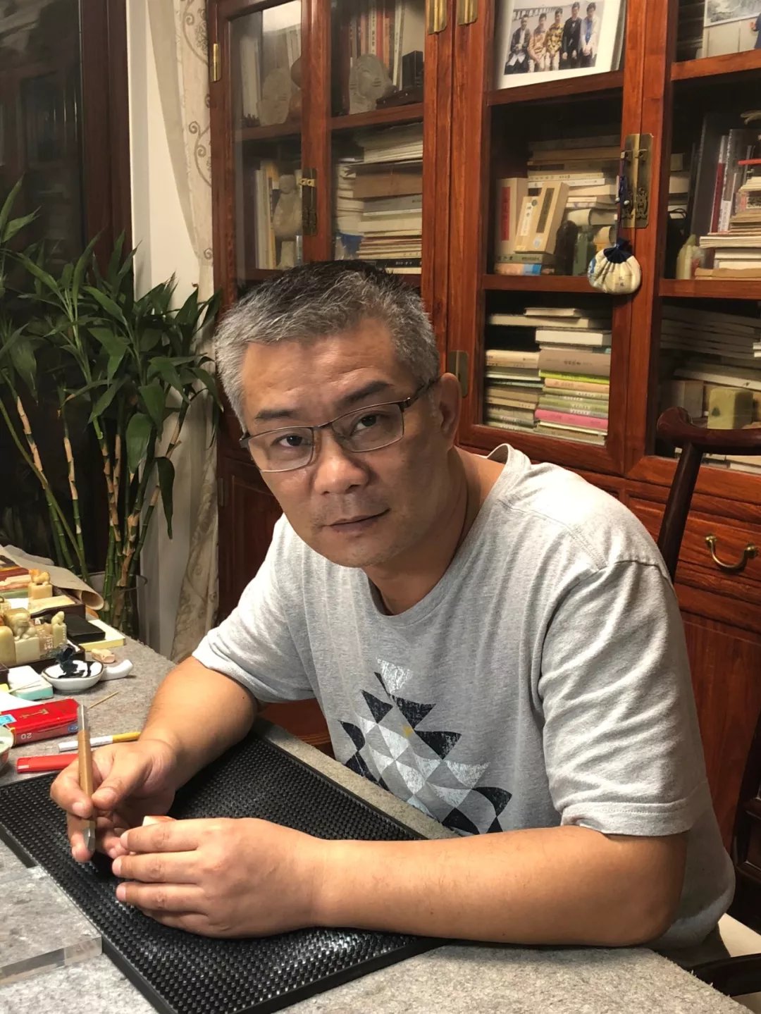 七O年生。職業(yè)書法篆刻家。師承郟永明、李文駿先生