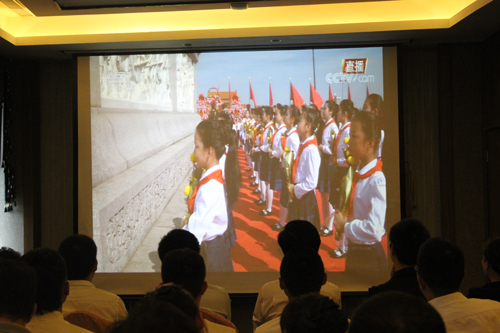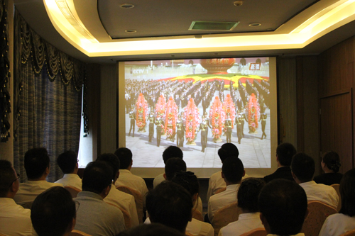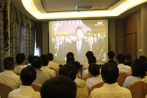 9月30日上午,中心組織集中收看黨和國家領導人在天安門廣場向人民英雄敬獻花籃儀式電視直播。中心主任劉海軍與各部門員工代表共30人觀看現(xiàn)場直播。