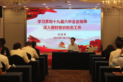 為深入貫徹落實黨中央關(guān)于意識形態(tài)工作的決策部署,切實提升全體黨員的意識形態(tài)能力建設,7月21日下午,中心黨支部在晶園廳組織全體黨員、積極分子開展了意識形態(tài)主題黨日支部書記劉海軍以學習貫徹十九屆六中全會精神,深入做好意識形態(tài)工作為題,為大家講授了一堂精彩生動的黨課。